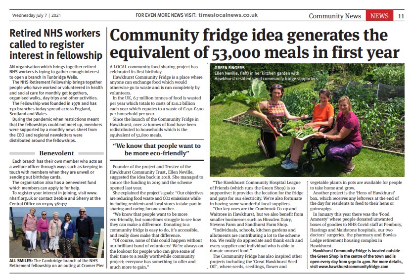| Carol Restarick I really appreciate the fridge, especially the lovely fruit and veg, thank you to everyone involved – the volunteers and those who donate xx | Rosemary Ferguson Itβs great to have the Community Fridge in the village and Iβm proud to be one of the volunteers. Well done Ellen for the amazing job you do | Susan Vangucci We are so lucky to have our community fridge. It is wonderful to know that so much food goes into stomachs rather than landfill! Well done to Ellen and all volunteers |